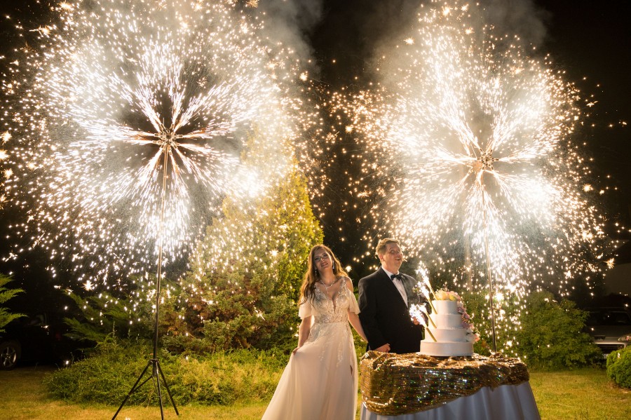 • Wiatraki iskier – To widowiskowa atrakcja, która tworzy prawdziwie bajkowy klimat. Wiatraki wyglądają zjawiskowo na żywo i na zdjęciach, tworząc efekt jak z filmu. To połączenie elegancji, nowoczesności i odrobiny magii – idealne do podkreślenia najpiękniejszych chwil tego wyjątkowego dnia.