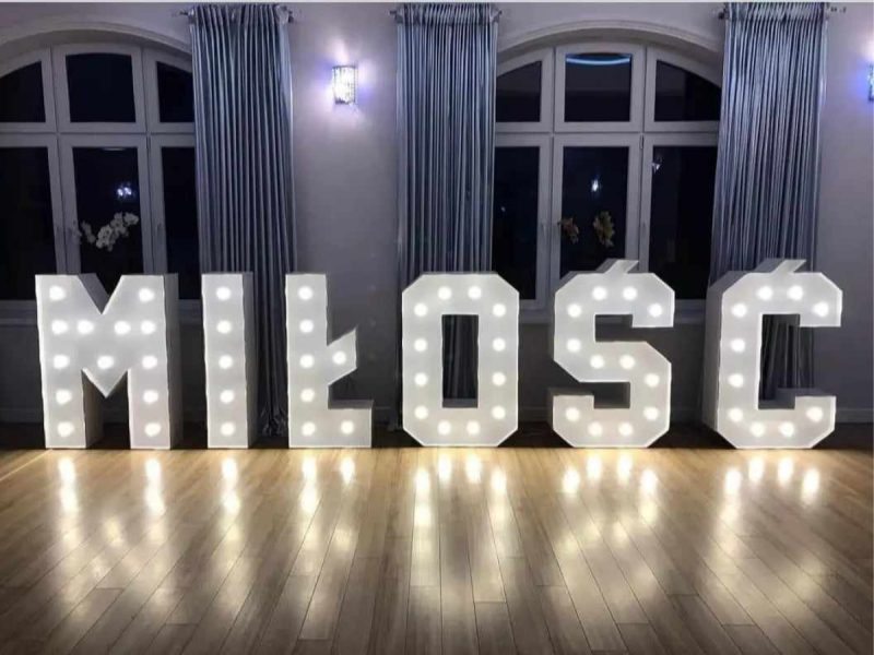 - Podświetlenie LED – ciepłe światło, które tworzy niepowtarzalny klimat. Nasze podświetlane napisy „Miłość” oraz „LOVE” to doskonały wybór na: