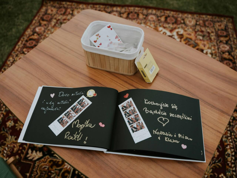 Personalizowana księga gości - wyjątkowa pamiątka na długie lata. Niech fotografia wykonana w naszej fotobudce ozdobi stronę księgi, a dzięki dostępnym przyborom do pisania zostaw kilka miłych słów.