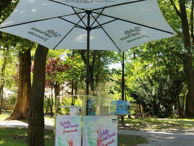 Oferujemy wynajem wózka z watą cukrową, który z pewnością przyciągnie uwagę i umili czas gościom na każdym przyjęciu – od urodzin po wesela!