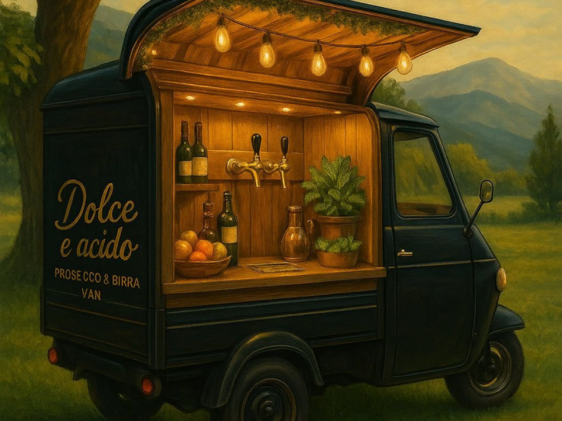 Dolce e Acido to mobilny bar, który zachwyci Twoich gości prosecco najwyższej jakości i rzemieślniczym piwem – wszystko serwowane prosto z urokliwego prosecco vana!