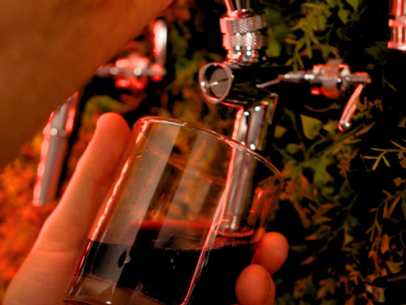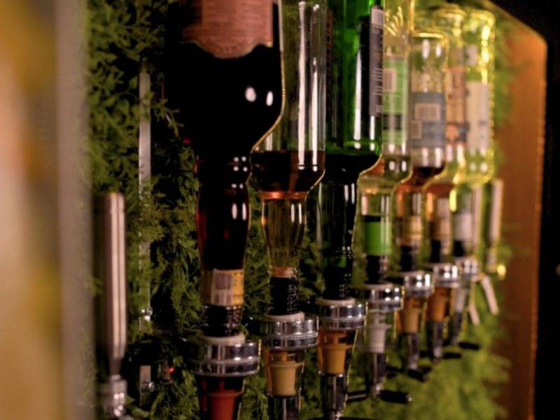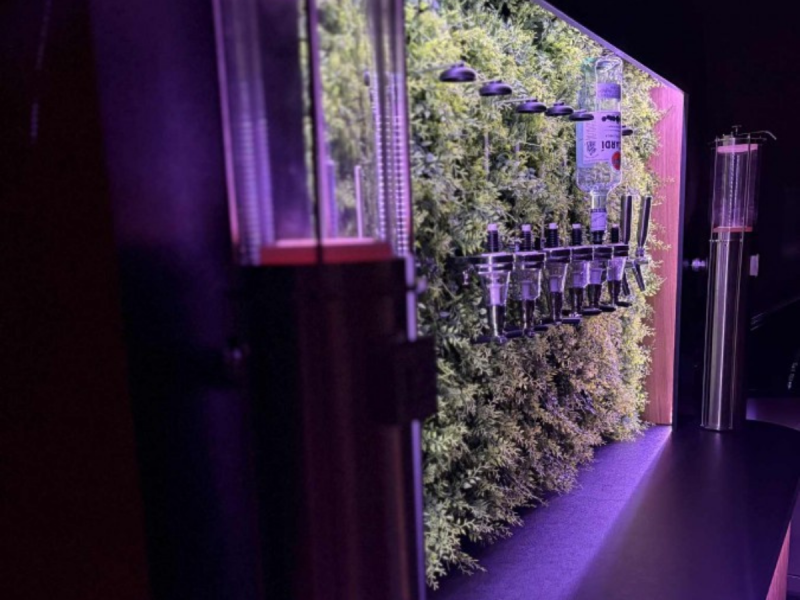 Cały bar składa się z 4 dziewięciolitrowych kegów na napoje gazowane takie jak: włoskie wino musujące, woda gazowana, coca-cola, sprite itd. Wszystkie napoje z kegów przechodzą przez schładzarkę, aby dotrzeć do kranów na ścianie.