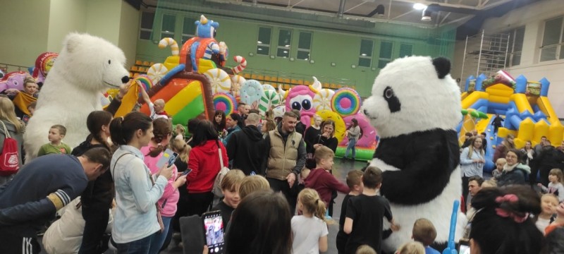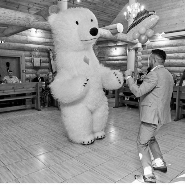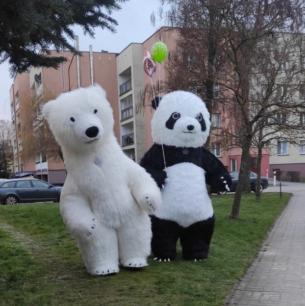 Posiadamy także ogromne, chodzące maskotki, które są nie tylko atrakcją dla dzieci ale i wszystkich gości weselnych.