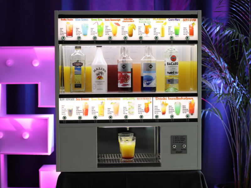 Drinkomat to urządzenie, które bez kolejek przygotuje kolorowe drinki dla Ciebie i Twoich gości a przy tym zapewni świetną zabawę