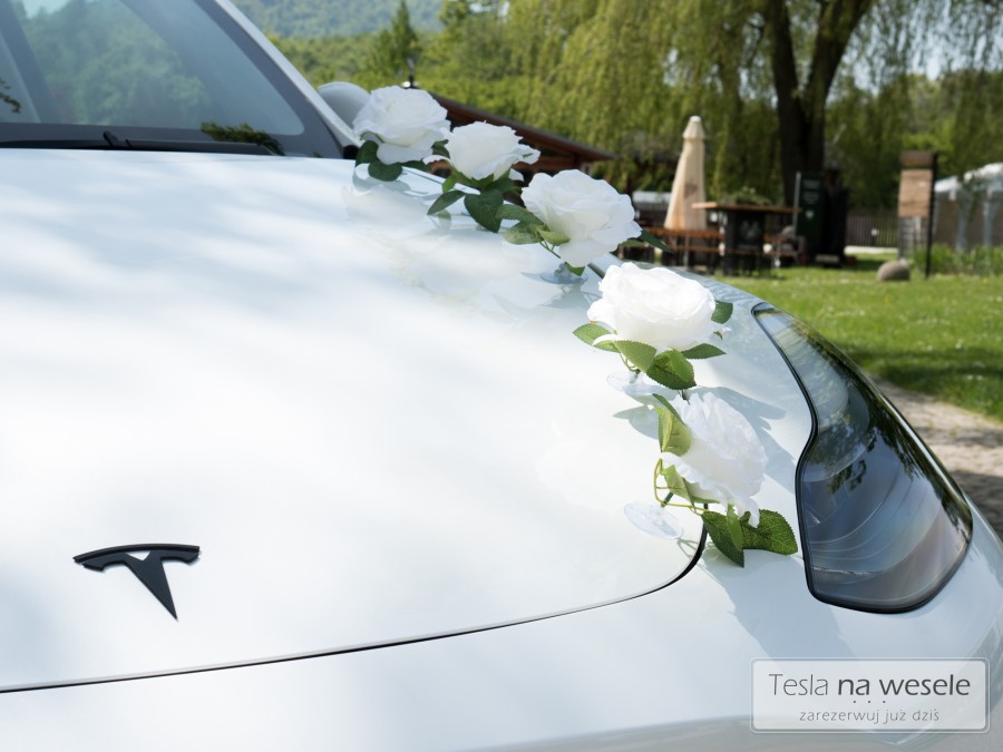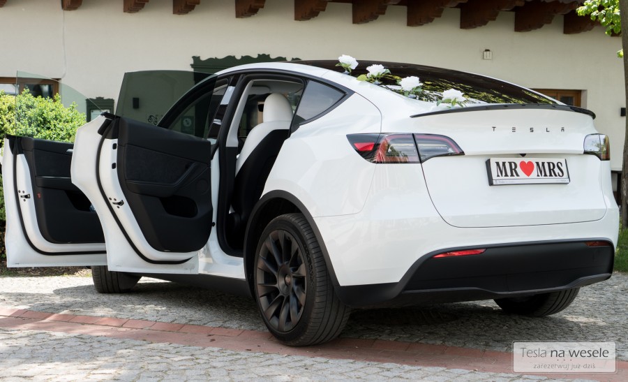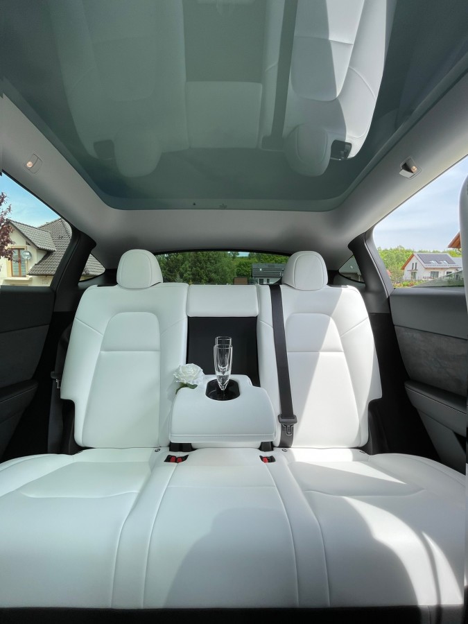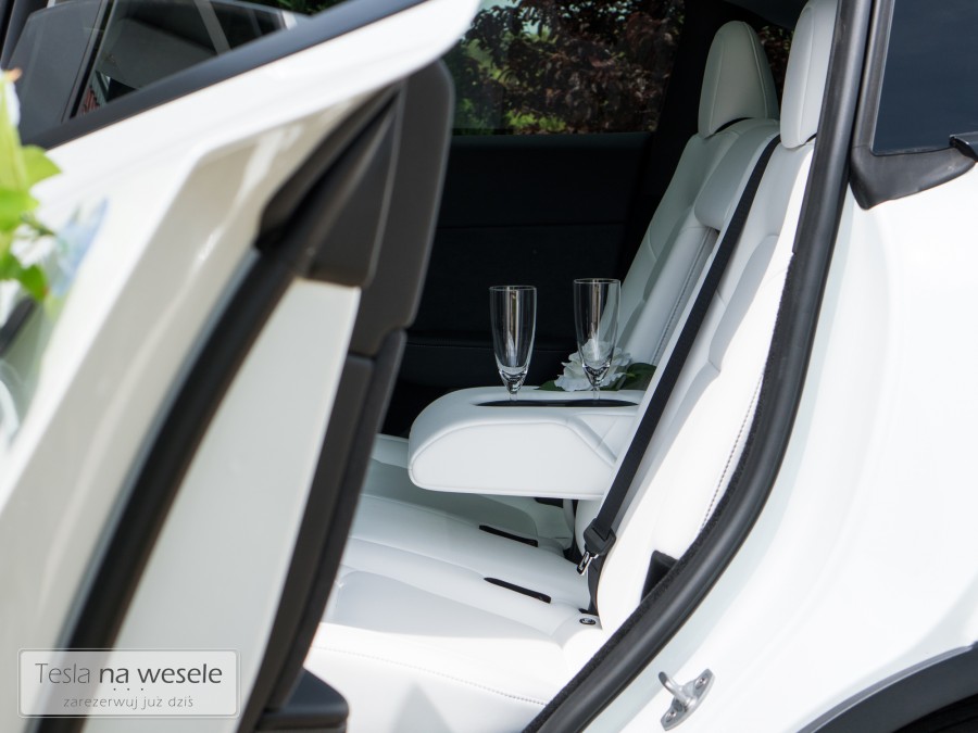 Perłowo biały kolor, białe skóry oraz przestronne wnętrze, do którego zmieści się największa suknia ślubna z 'kołem’. Jest to luksusowy SUV, który oferuje elegancki wygląd, doskonałą wydajność, a także zaawansowane funkcje technologiczne. Ogromny panoramiczny dach, który pozwoli waszemu fotografowi na wykonanie jeszcze lepszych ujęć. Tesla to elegancja a zarazem sportowy pazur i cisza – jeśli tylko będziecie jej chcieli. Przejażdżka tym autem doda niezapomnianych przeżyć. Razem w kombinacji z Waszym ślubem to gwarantowana radość.