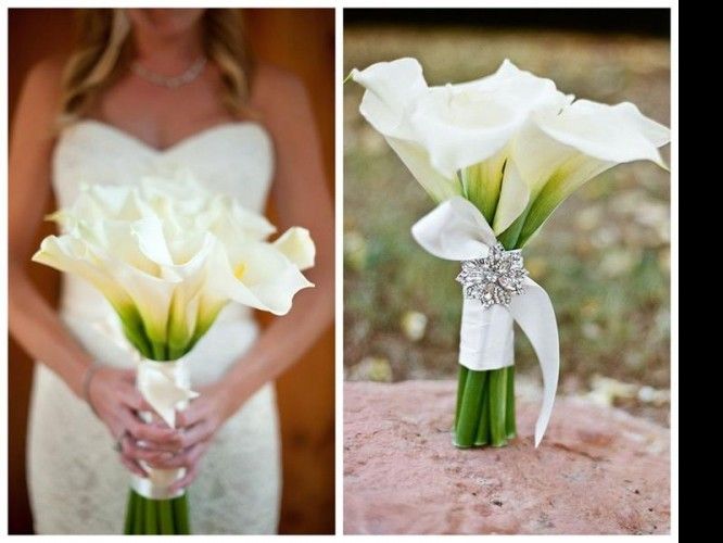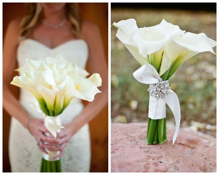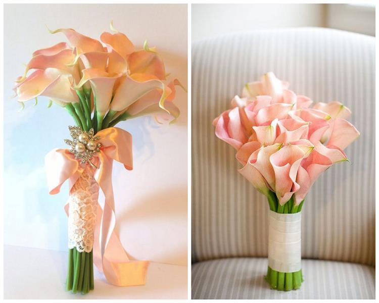 Kwiaty te w ślubnej wiązance bardzo dobrze wyglądają same, ale często łączone są również z różami, czy delikatną eustomą. Z racji tego, że łodygi cantedeskii są dość masywne i sztywne, zwykle oplata się je ozdobną tasiemką, by zachowały pożądany kształt.