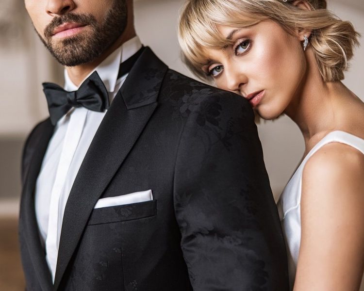 Co jeszcze jest niezbędne, by uzupełnić strój pana młodego w stylu glamour? Świetnym pomysłem w przypadku garniturów formalnych będzie kamizelka. Nie tylko dodaje ona odświętnego wyrazu każdej stylizacji, ale również praktycznie pozwala zachować dobry styl, nawet po zdjęciu marynarki. Jednak oprócz samej kamizelki, masz szeroki wybór smokingów. W zależności od Twoich preferencji, możesz wybrać smoking gładki lub przyozdobiony charakterystycznym wzorem – taki smoking nazywany jest żakardem.