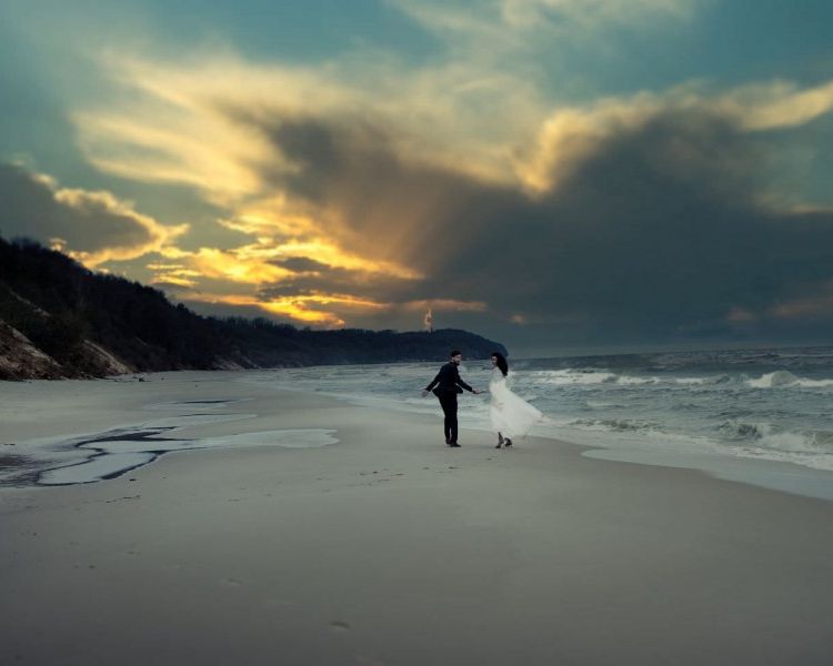 Ze względu na warunki pogodowe sesje ślubne nad morzem są najbardziej udane od późnej wiosny do