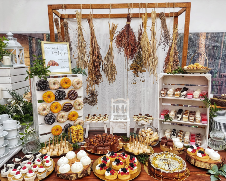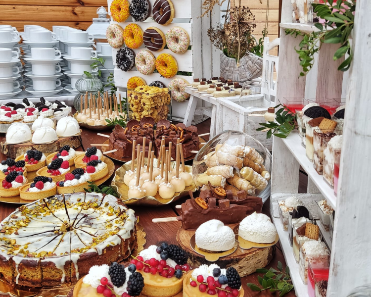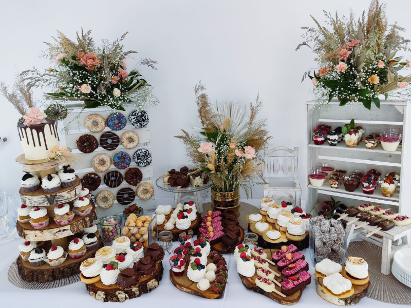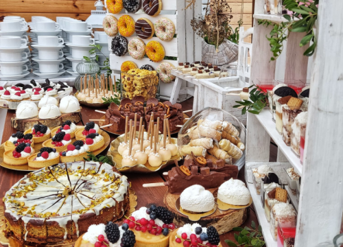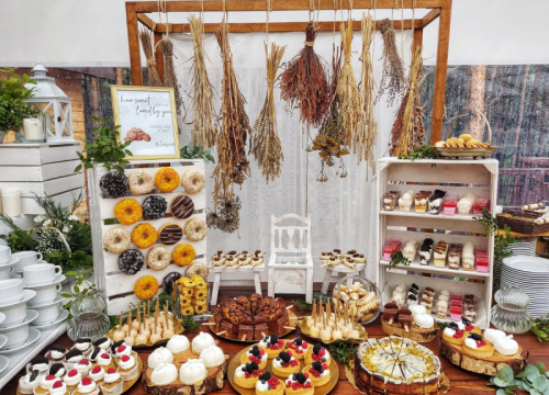 Wykonujemy:torty artystyczne, stoły słodkie (candy bar), ciasta, dekoracje, stoły wiejskie, stoły szwedzkie, wyroby garmażeryjne i wiele innych specjalnych zamówień