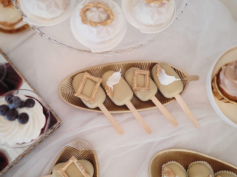 Poza tortem weselnym, specjalizujemy się w przygotowywaniu słodkich stołów, które stanowią prawdziwą ucztę dla oczu i podniebienia. Nasze kompozycje są pełne różnorodności i finezji, oferując szeroki wybór ciast, babeczek, makaroników, monoporcji i innych autorskich słodkości. Każdy element jest starannie dopasowany, aby stworzyć harmonijną i spójną aranżację, która idealnie wpasuje się w klimat Waszego przyjęcia.