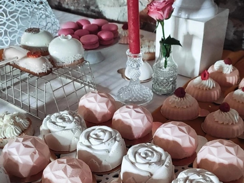 Oferujmy niebanalne torty artystyczne, pyszne domowe ciasta, oraz pyszne desery w formie słodkich stołów.