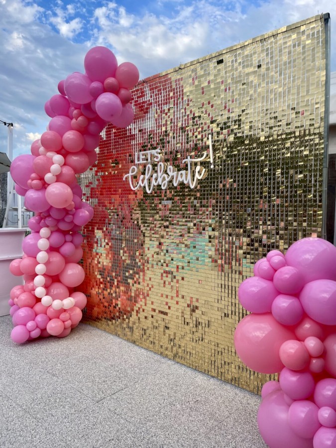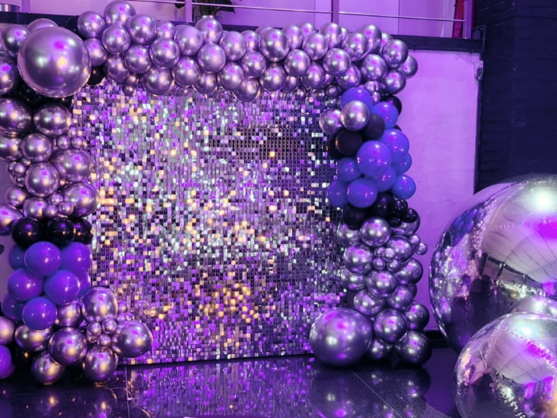 dekoracji na imprezy i przyjęcia. Ścianki cekinowe, napisy