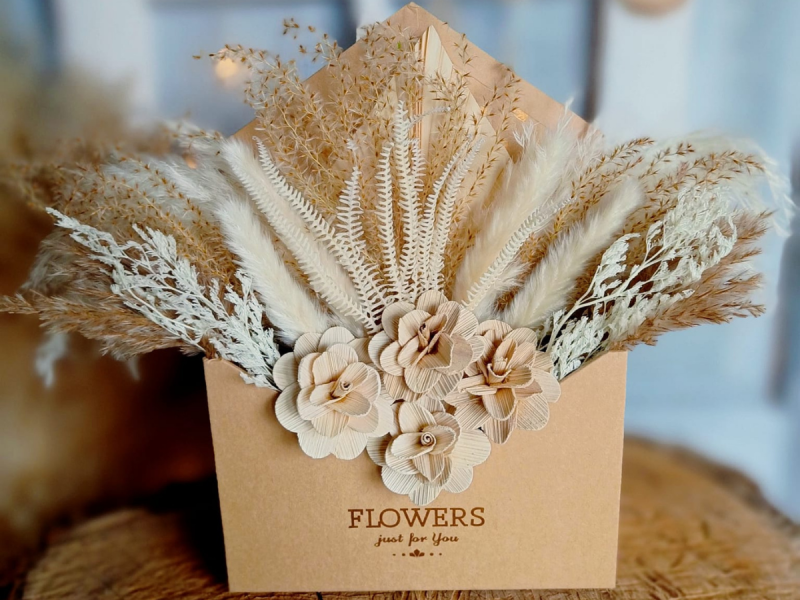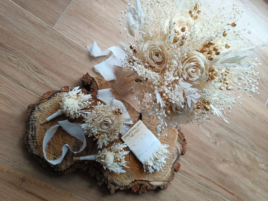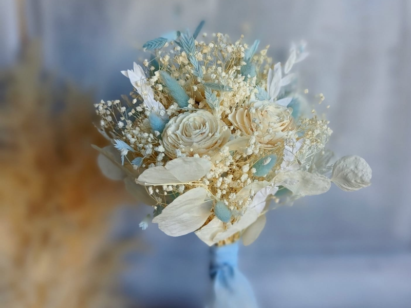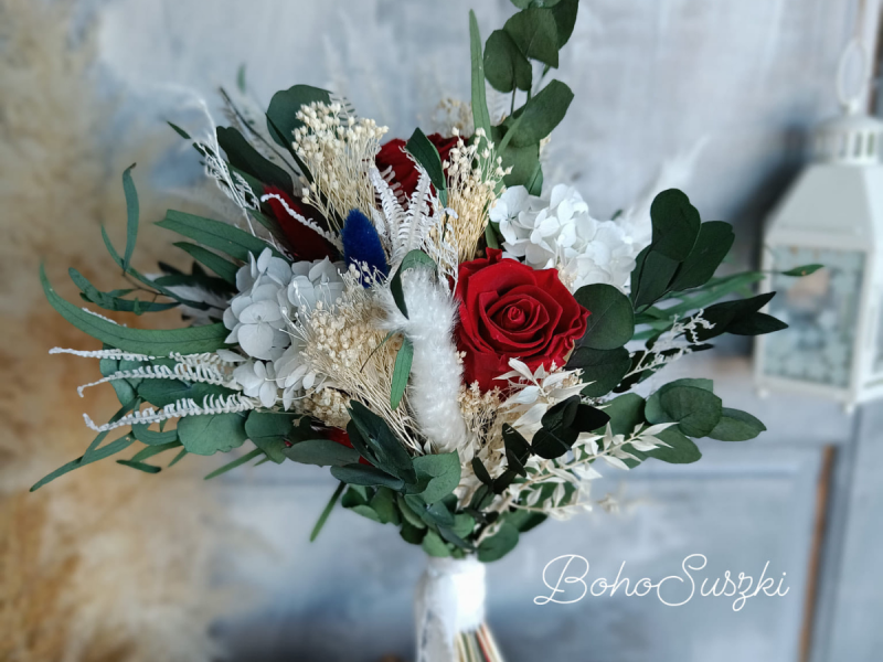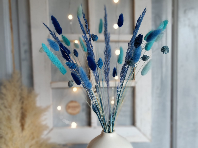 Ozdoby z suszonych i stabilizowanych kwiatów, traw i zbóż- wianki, kwieciste obręcze, bukiety i inne.