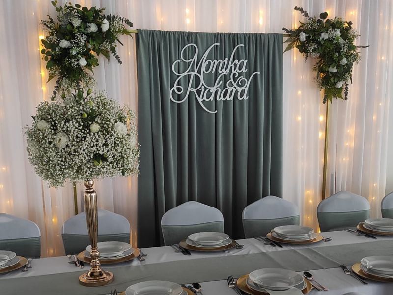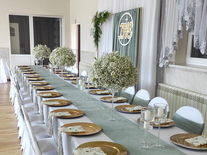 Oferuję kompleksowe usługi dekoratorskie: od eleganckiego ubrania stołów i krzeseł, przez zachwycającą ściankę, aż po całkowity wystrój sali. Każdy detal został starannie dopracowany, aby stworzyć niezapomnianą atmosferę.