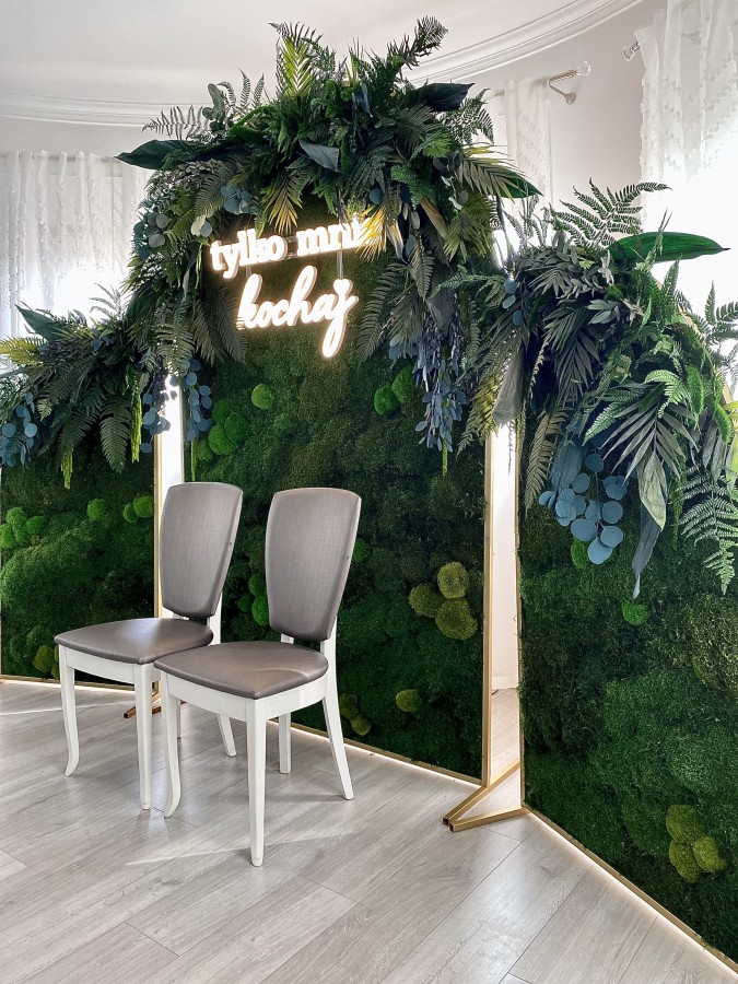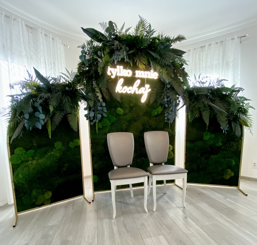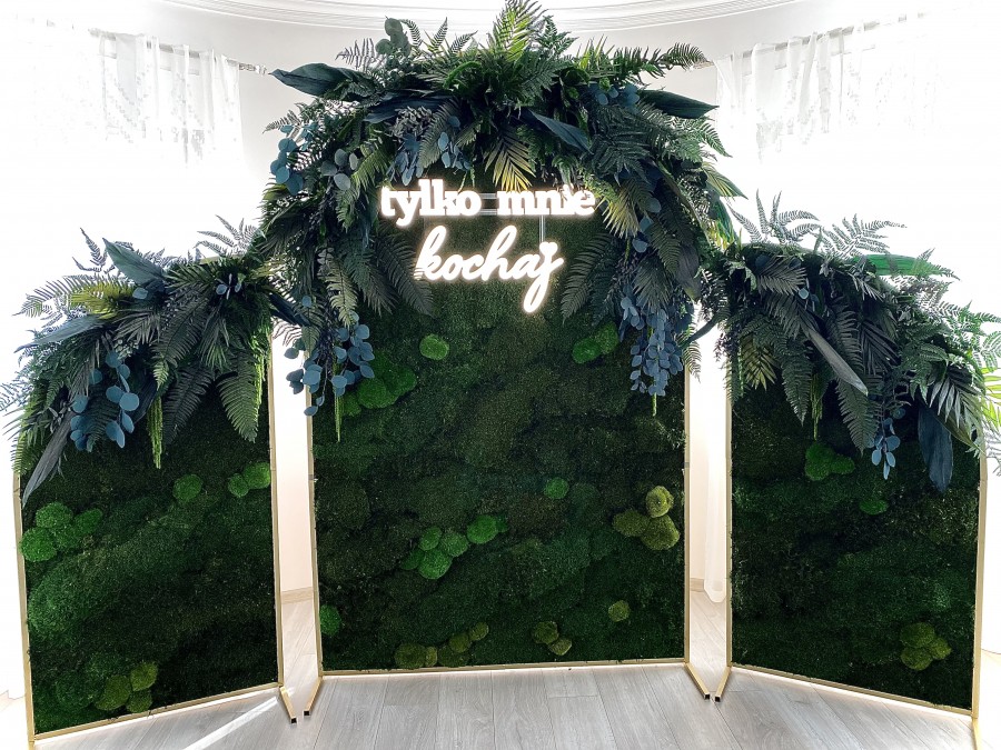 Ścianka wykonana jest z naturalnych roślin stabilizowanych. Może być wykorzystana wyłącznie wewnątrz budynku lub namiocie weselnym z klimatyzacją.