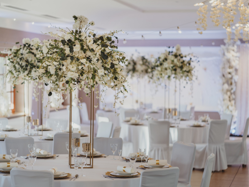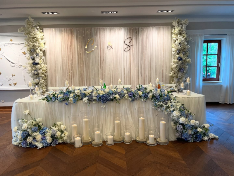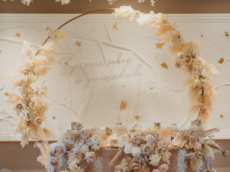 Nasze kompozycje zachowują idealny wygląd od początku do końca przyjęcia, niezależnie od temperatury czy wilgotności. Wypożyczenie dekoracji to ekonomiczne i ekologiczne rozwiązanie – możecie cieszyć się luksusową oprawą bez obciążania budżetu i środowiska.