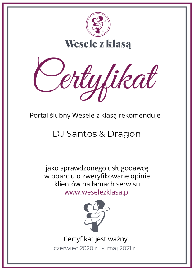 International Wedding Party! DJ Santos & Dragon (drums) To unikalna oferta na rynku usług weselnych. Łączymy pokolenia, kultury i gusta! Wiemy jak profesjonalnie zrealizować przyjęcie weselne i rozbawić osoby z różnych środowisk i krajów. Oferta charakteryzuje się wysoką kulturą osobistą, prowadzeniem przyjęcia w języku polskim, angielskim, hiszpańskim lub portugalskim. Dodatkowo oferujemy koncerty i pokazy taneczne naszego całego zespołu, tematyczną dekorację oraz wysokiej klasy nagłośnienie i oświetlenie.