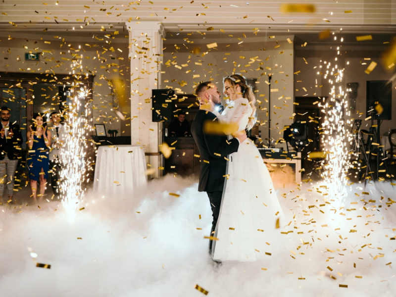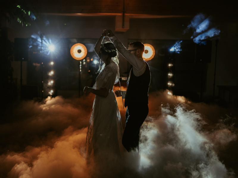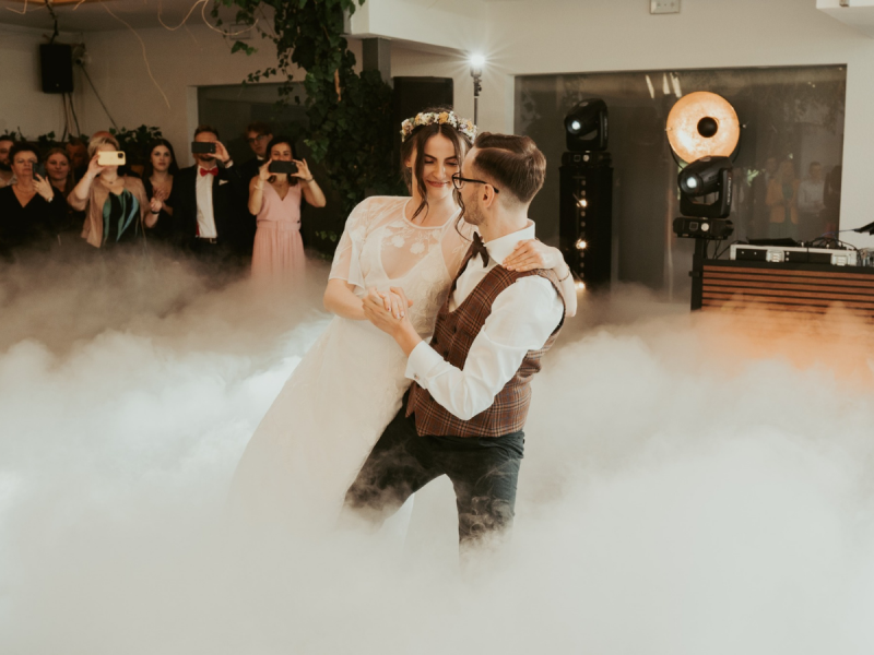 Pierwszy taniec w chmurach – romantyczna oprawa z ciężkim dymem, która zamienia pierwszy taniec w magiczny moment.
