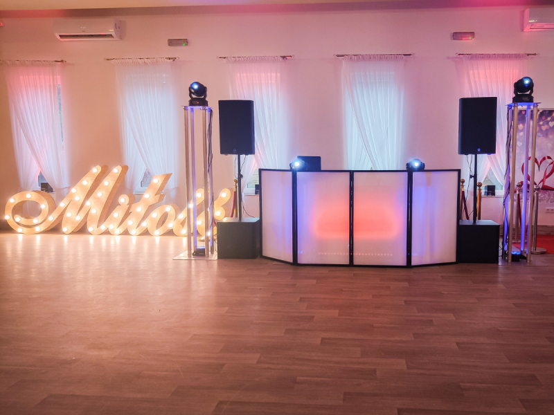- imponujące oświetlenie - ruchome głowy, wytwornice dymu (w tym ciężki dym na pierwszy taniec!), banki mydlane, napis LOVE, fontanny iskier i zdalnie sterowane, dekoracyjne oświetlenie LED sali – stworzę magiczną atmosferę,