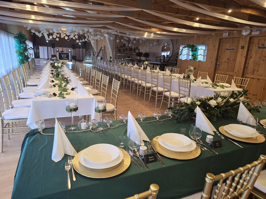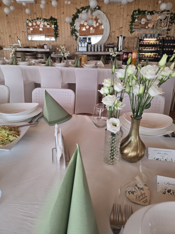 Możliwość zorganizowania każdej uroczystości do 150 osób w obiekcie klimatyzowanym. Jesteśmy w stanie pomóc w organizacji przyjęcia (mamy doświadczenie).