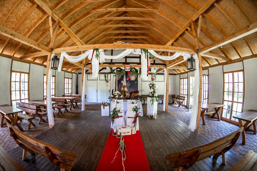 Dziękuję za zorganizowane wesele. Mieliśmy piękne, okrągłe stoły bankietowa, które udekorowała polecona przez właścicieli pani Bożenka. Wszystko zgodnie z naszymi sugestiami. Korzystaliśmy z kramu i szwedzkiego stołu. Wędliny Gospodarzy zachwyciły naszych Gości i nas, choć byliśmy sceptycznie nastawieni. Potrawy były naprawdę smaczne, mi najbardziej smakował kotlet mazurski i sałatka z kurczaka z ananasem. Obsługiwał nas pan Daniel - jeszcze tak uprzejmego kelnera nie spotkaliśmy nigdy w swoim życiu. Pozostałe kelnerki także działały błyskawicznie i co bardzo ważne były "niewidoczne". Cała osada jest niesamowicie urokliwa. Faktycznie idealne miejsce na wesele. Polecamy wszystkim młodym. Z podziękowaniami dla Gospodarzy. Młodzi.