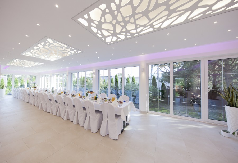 To co nas wyróżnia wsród innych sal to nasza oranżeria. Jej przeszklone ściany oraz nowoczesne oświetlenie na pewno wprowadzą naszych gości w miłą atmosferę.