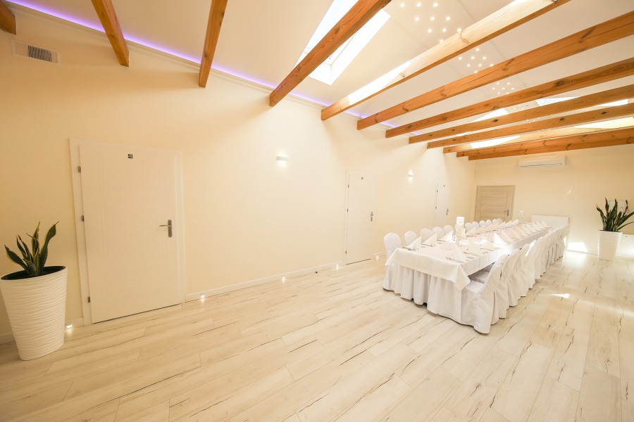 Idealna na kameralne przyjęcia. Jej elegancki wystrój oraz system okien dachowych wprawi naszych gości w wyjątkowy klimat. Sala jest świetnym rozwiązaniem dla Gości, którzy cenią sobie spokojną rodzinną atmosferę.
