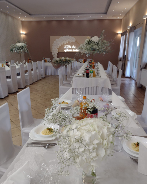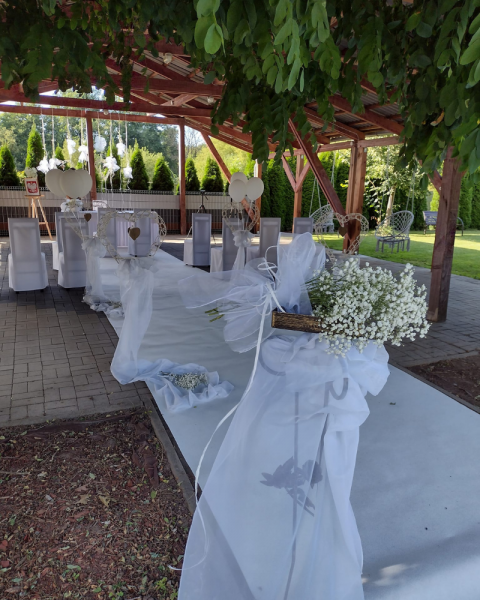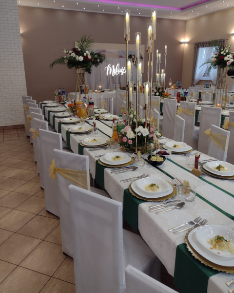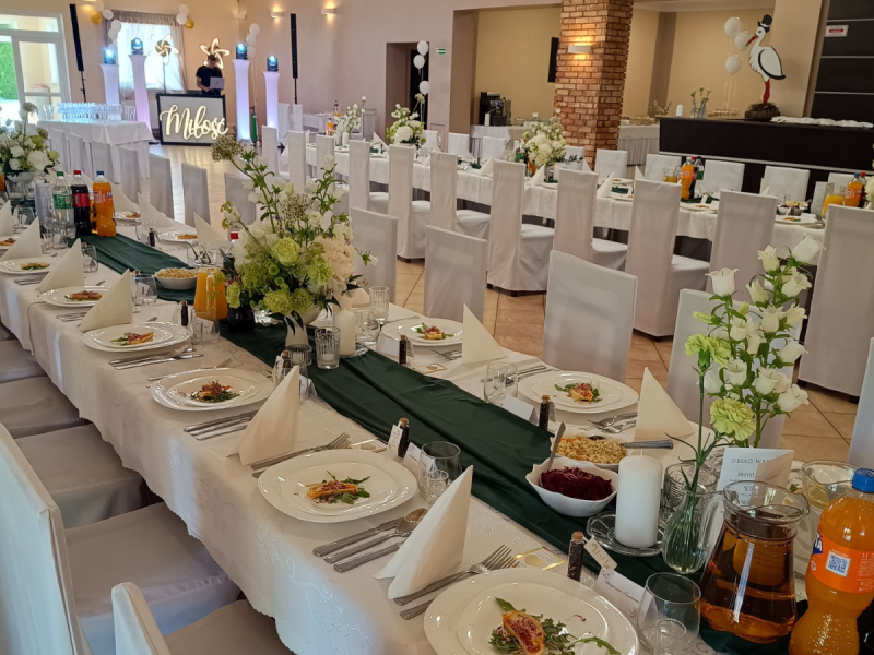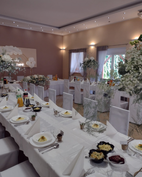 Położony w malowniczej okolicy, z dala od miejskiego zgiełku, nasz obiekt oferuje elegancką salę weselną, która pomieści zarówno kameralne przyjęcia, jak i większe uroczystości. Stylowe wnętrza, naturalne dekoracje i otoczenie zieleni tworzą wyjątkową przestrzeń sprzyjającą celebracji miłości.