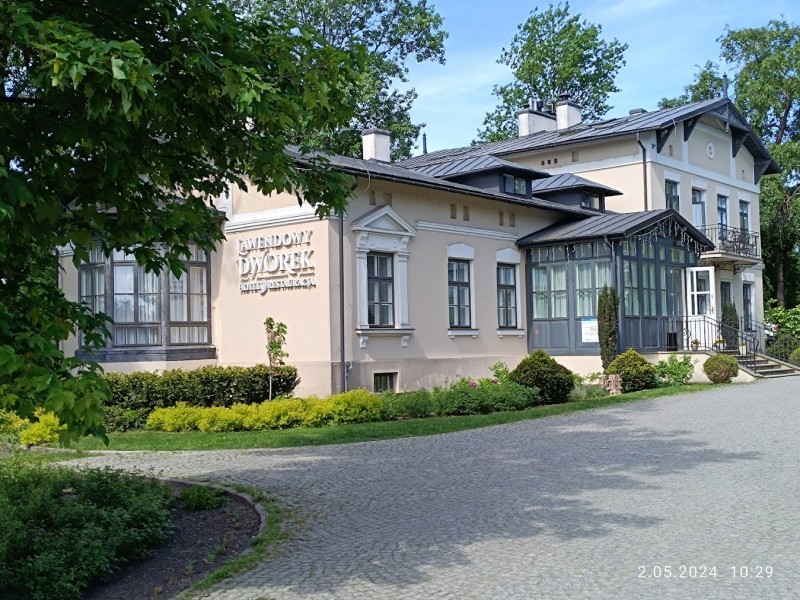 Lawendowy Dworek mieści się w zabytkowej willi z 1895r. W latach 2008-2015 obiekt przeszedł gruntowny remont oraz adaptację na funkcję hotelowo-gastronomiczną. Obiekt położony jest w sercu ponad hektarowego, zabytkowego parku.