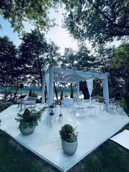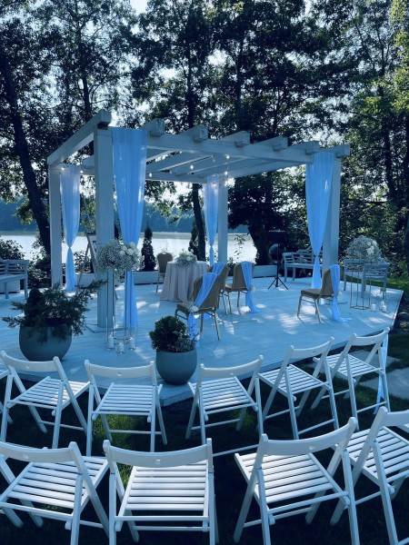 Położenie w zacisznym miejscu w otoczeniu zieleni i jeziora nadaje wyjątkowy klimat każdej uroczystości.