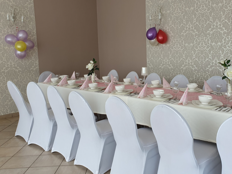 Oferujemy stylową i przestronną salę, w której doskonale odnajdują się zarówno kameralne przyjęcia, jak i pełne energii wesela do białego rana. Klimatyczny wystrój, eleganckie detale i możliwość aranżacji zgodnie z wybranym motywem sprawiają, że każde przyjęcie nabiera indywidualnego charakteru.