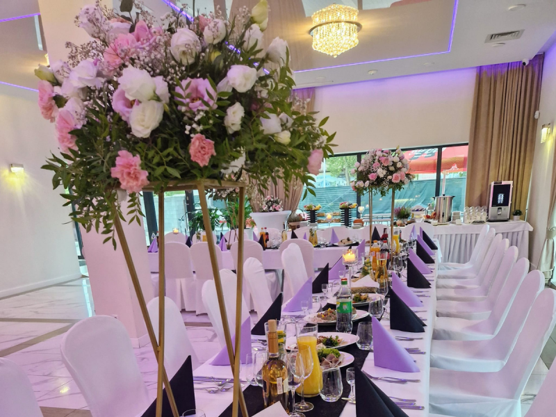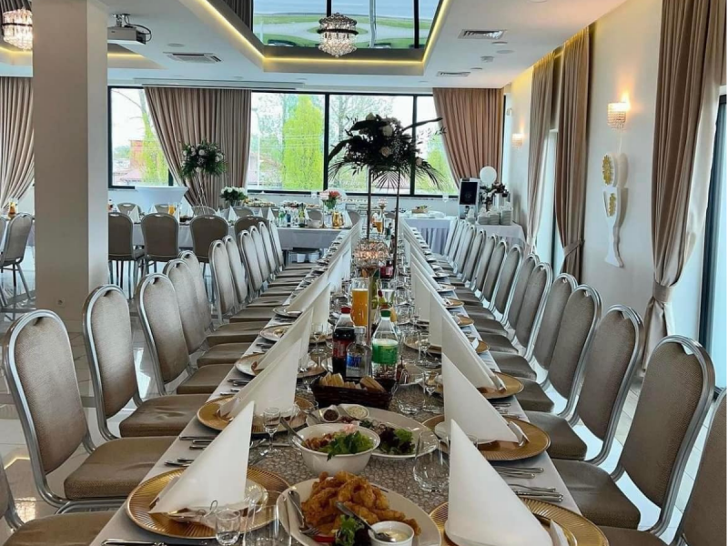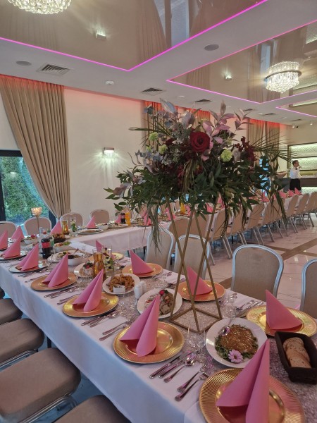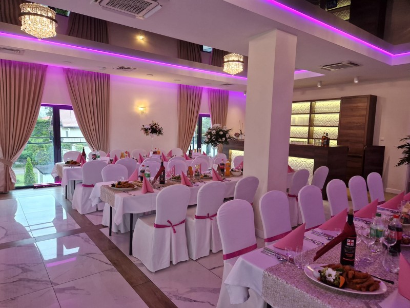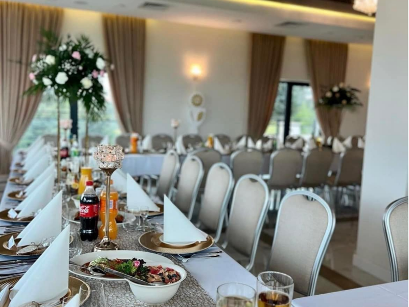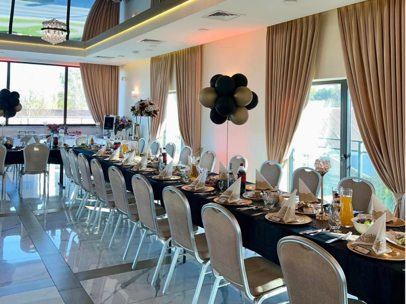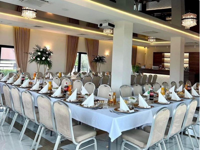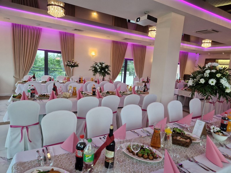 Nowocześnie urządzona sala bankietowa, to idealne miejsce na Wasz „Wielki Dzień”. Organizacja wesela będzie dla Was przyjemnością, zrealizujecie z nami swoje marzenia dotyczące wystroju oraz menu.