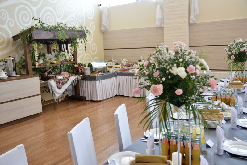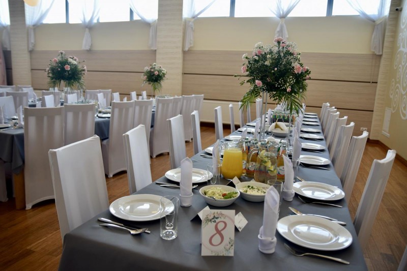 Do dyspozycji Gości oddajemy dwie klimatyzowane sale, które pomieszczą nawet 220 osób. Przestronne wnętrza możemy zaadoptować w dowolny sposób, w zależności od charakteru przyjęcia i liczby Gości. Elegancka przestrzeń, duży parkiet do tańczenia, świetna akustyka, gustowna aranżacja stołów, monitorowany parking, wspaniała kuchnia z profesjonalną obsługą to cechy charakterystyczne naszej Sali