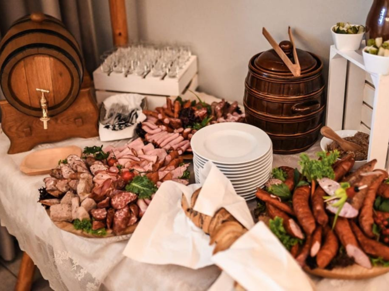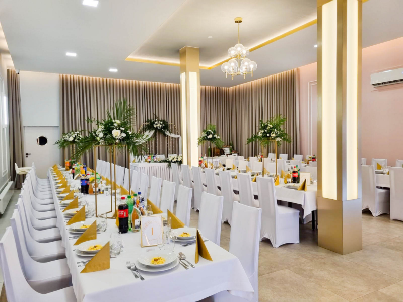 Sala bankietowa pomieści 100 osób i jest klimatyzowana, co znacznie poprawia komfort przyjęcia. Gwarantujemy przepyszne jedzenie przygotowane w oparciu o sprawdzone receptury, które zachwycą nawet najbardziej wymagających gości. Dodatkowo dzięki współpracy z różnymi usługodawcami ślubnymi tj. dj’e, zespoły, fotografowie, kwiaciarnie możemy zorganizować przyjęcie weselne kompleksowo, dzięki czemu Państwa dzień będzie wyjątkowy i jedyny w swoim rodzaju.