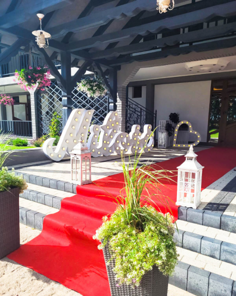 Organizując wesele u nas otrzymasz w standardzie: Przywitanie Państwa Młodych chlebem i solą Dekoracje krzeseł białymi pokrowcami Czerwony dywan przed wejściem do Sali