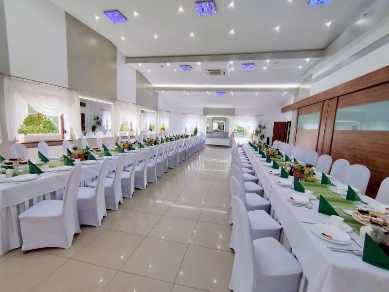 Na terenie obiektu znajdują się przestronne parkingi, ogrodzony plac zabaw oraz zadaszony taras, na którym również możemy zorganizować Wasze wymarzone przyjęcie!