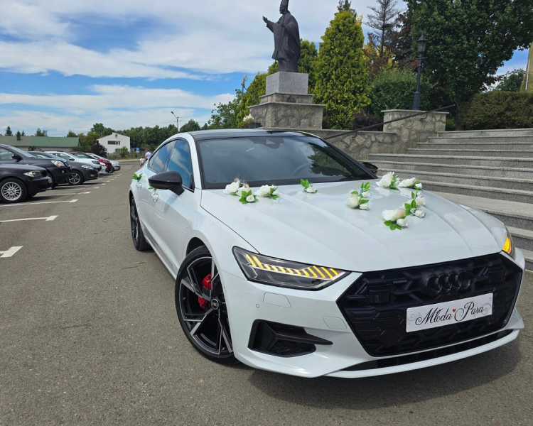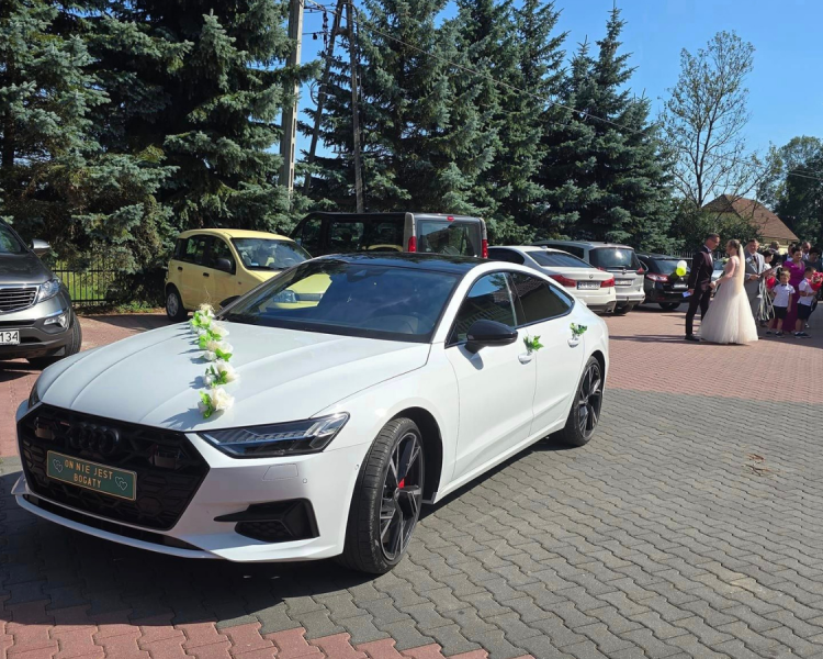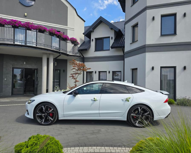 Oferuję wynajem białego Audi A 7 S-Line Sportback Quattro do ślubu.