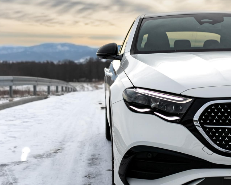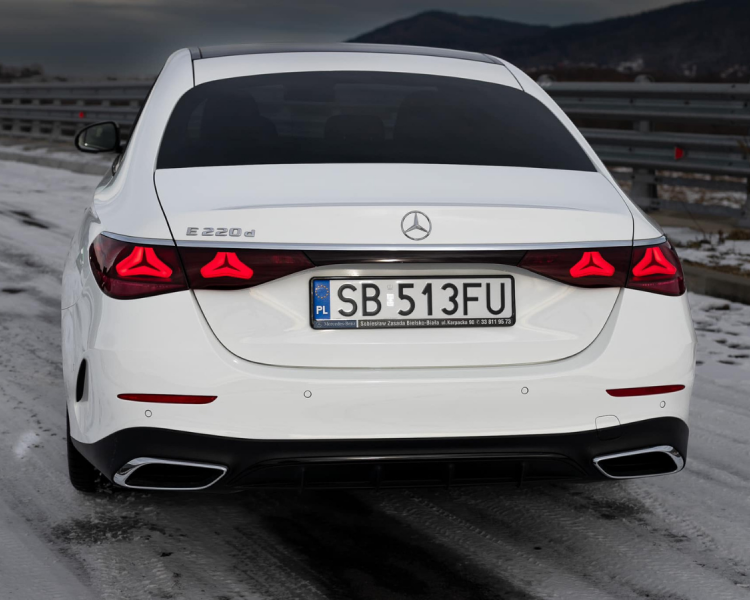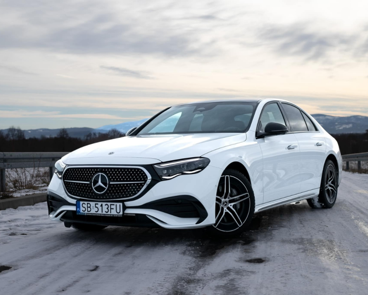 Biały Mercedes E220 (możliwy wynajem bez kierowcy).