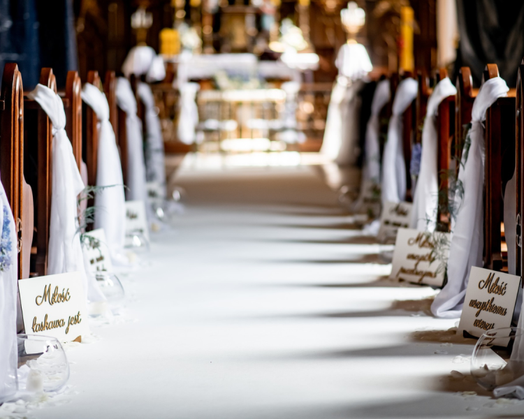 Kościół to miejsce wyjątkowe. Dekoracje powinny być subtelne, ale efektowne.