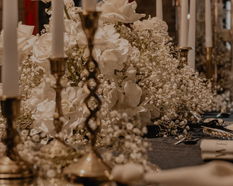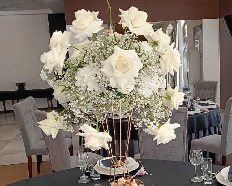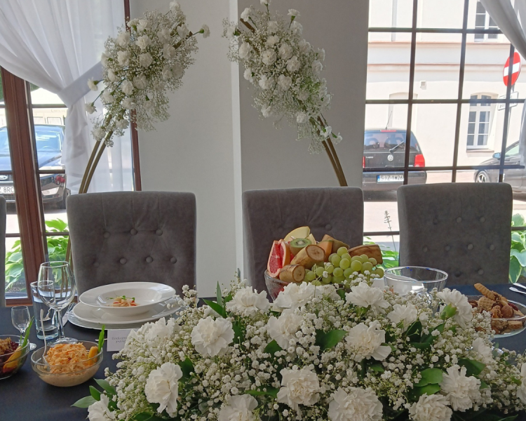 - dekoracje kwiatowe sal weselnych - kompozycje stołów, aranżacje przestrzeni, ścianki, girlandy i detale, które tworzą niepowtarzalny klimat przyjęcia,