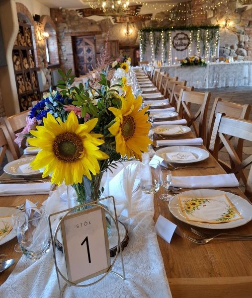 - wypożyczalnię dekoracji (obrusy, serwetki, wazony, neony świetlne, tablice powitalne itp.)