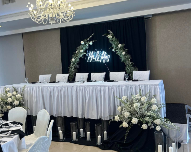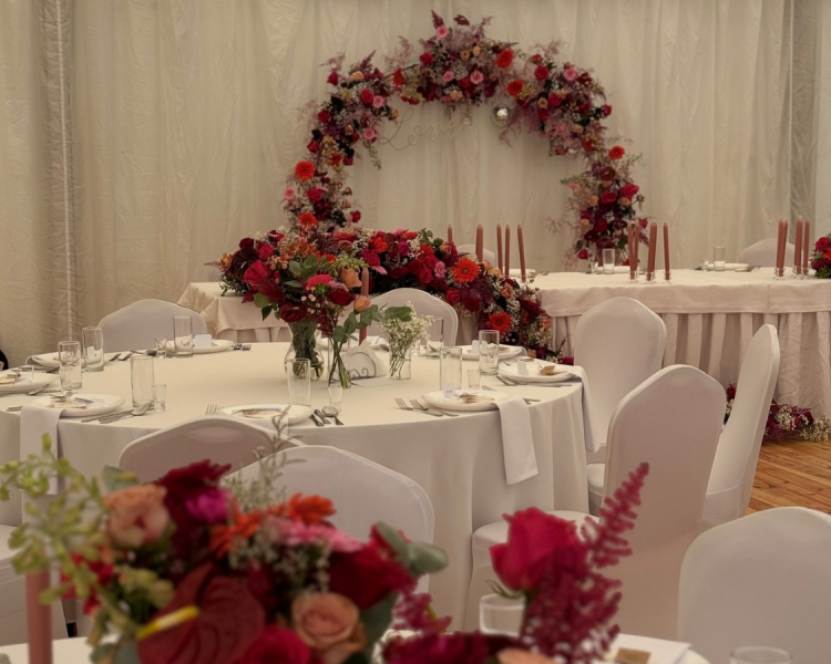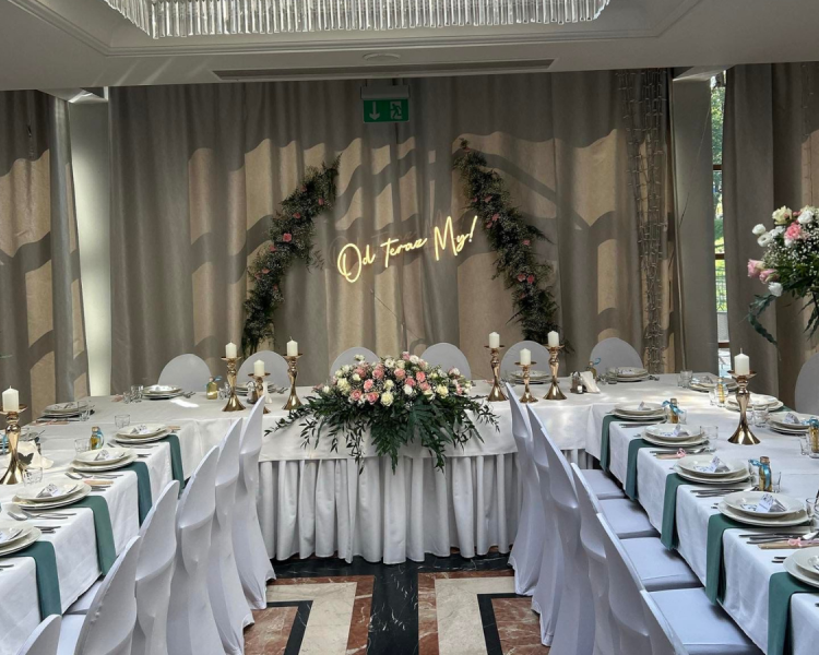 - dekoracje sali weselnej - skomponujemy niepowtarzalne dekoracje kwiatowe, które wprowadzą romantyczną i elegancką atmosferę,