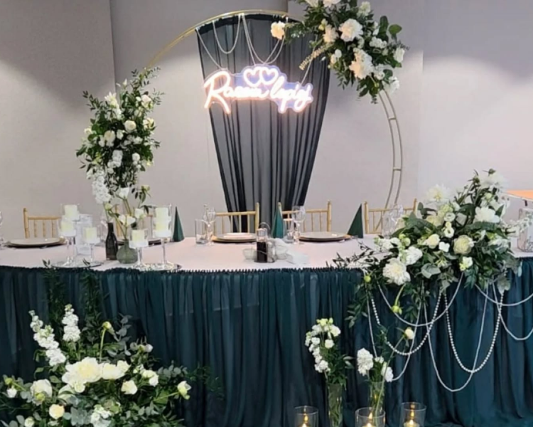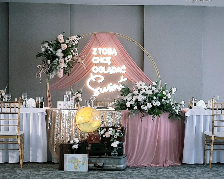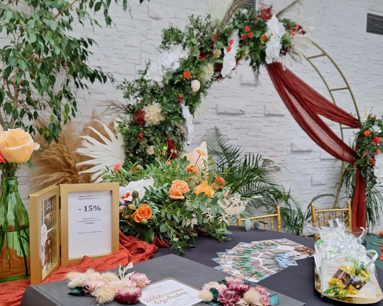 - dekoracje ślubne i weselne – od eleganckich ceremonii plenerowych po wystawne sale bankietowe,