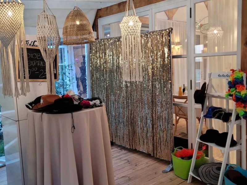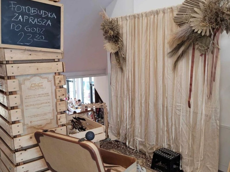 Dla klientów poszukujących spokoju i prywatności przy wykonywaniu zdjęć – możemy zaproponować zabudowę fotobudki stelażem z kotarami.