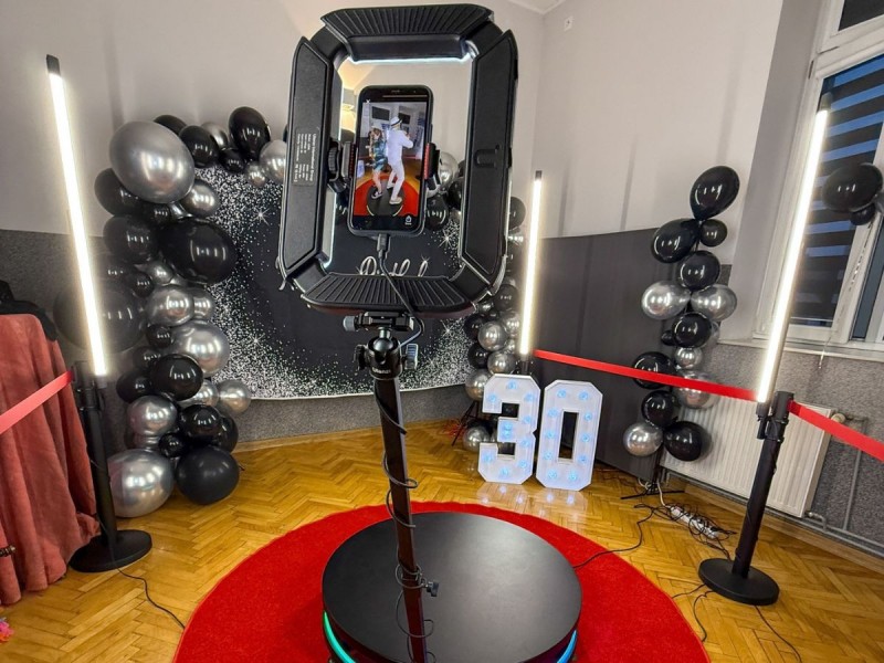 Oferuję Państwu wynajem FotoBudki 360 o platformie 100 cm. Solidna metalowa konstrukcja pomieści nawet 5 - 6 osób.