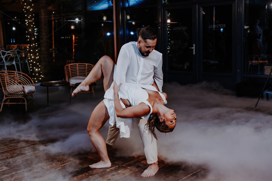 Z kolei sesja poślubna, gdy opadnie kurz, stres zejdzie i już będzie można na spokojnie poluzować muszkę i gorset daje fantastyczne pole do szaleństwa, romantyzmu, wykazania się Waszą oryginalnością. Znając Was podsuwam różne propozycje i jestem otwarty na Wasze pomysły.