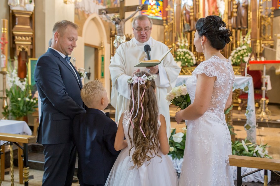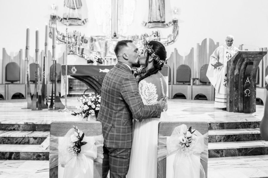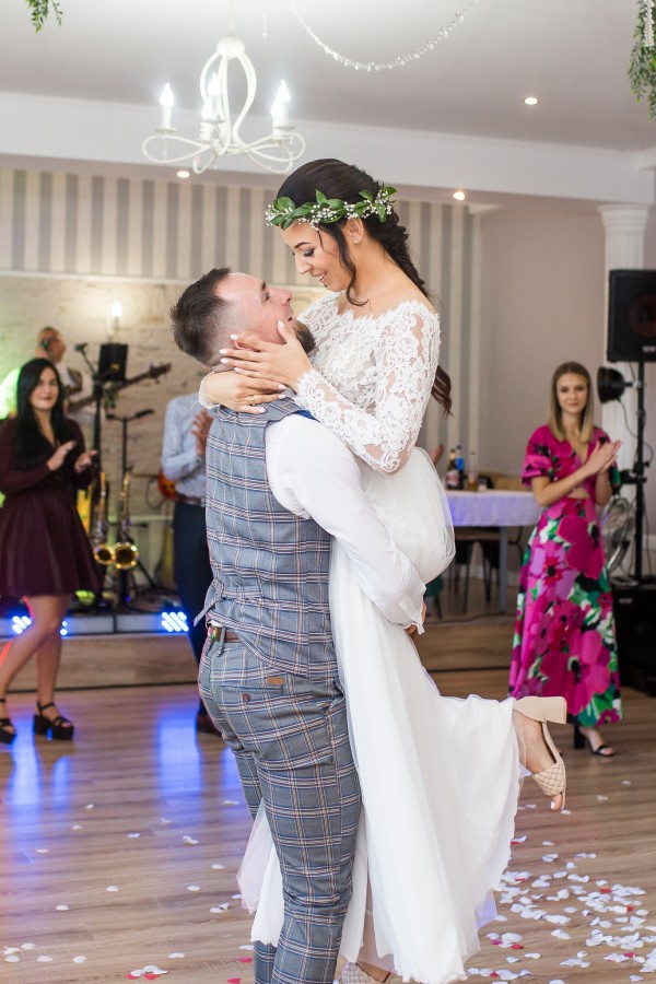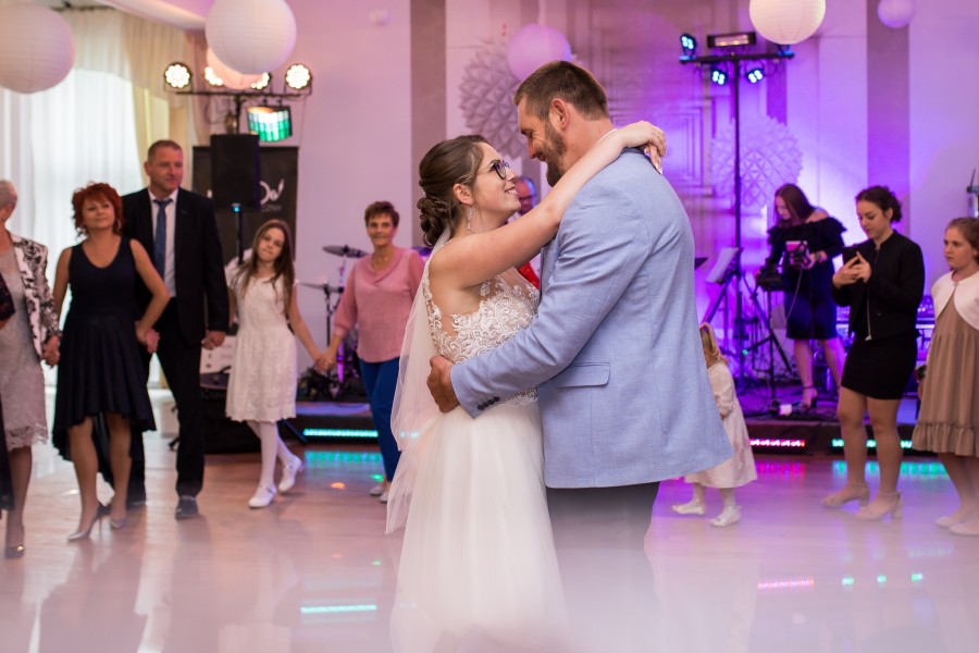 Po uroczystym wypowiedzeniu przysięgi i włożeniu sobie obrączek na palce, przenosimy się na sale weselną gdzie wszyscy się radują i tańczą.