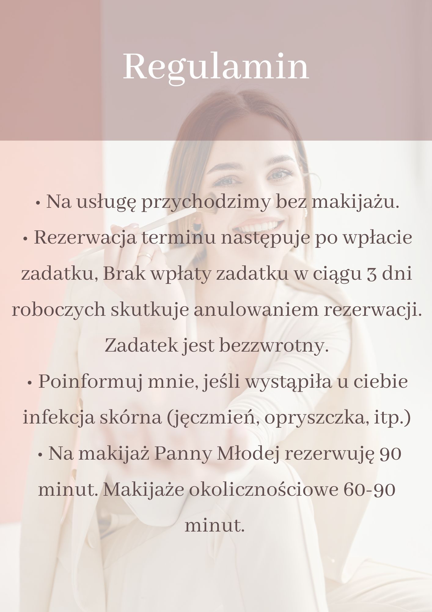 Cześć! Mam na imię Ola i specjalizuję się w makijażu na wyjątkowe okazje, w tym śluby. Moim celem jest podkreślenie Twojego naturalnego piękna i stworzenie trwałego makijażu, który przetrwa całą uroczystość – od pierwszych wzruszeń po ostatni taniec.