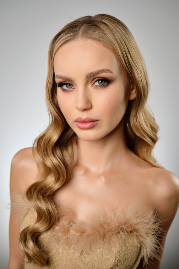 Zawsze tworzę makijaż, który współgra z fryzurą i suknią, nie ma efektu przemalowania, a do tego jest niewyczuwalny na skórze.