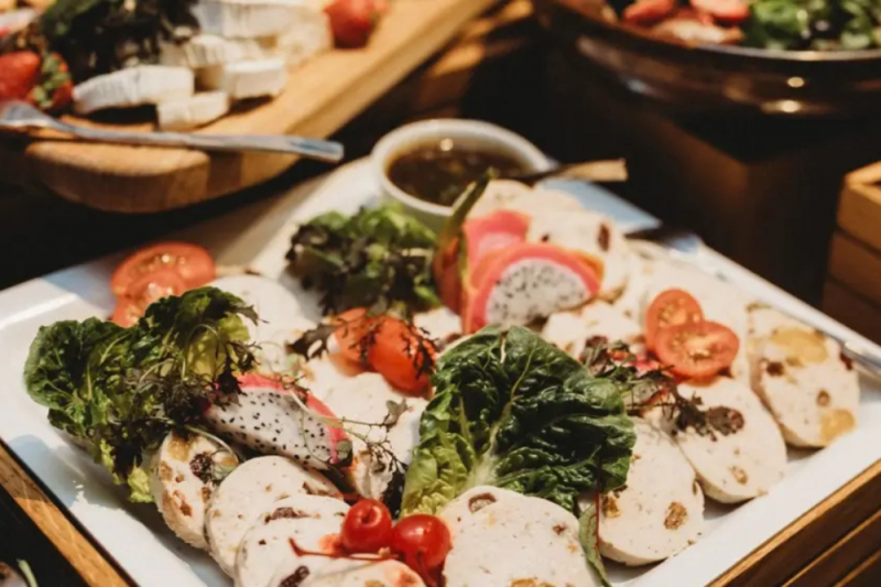 • 10 przekąsek zimnych podane w stole (w tym 3 sałatki, przystawki uzupełniane);